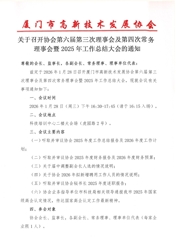 关于召开协会第六届第三次理事会及第四次常务理事会暨2025年工作总结大会的通
